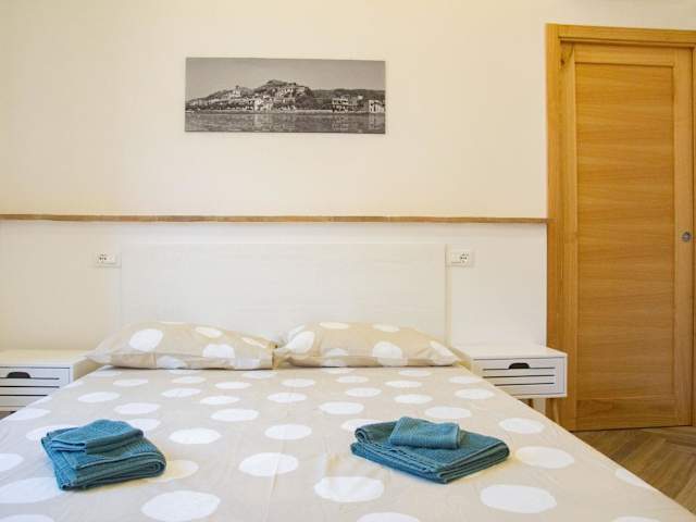 Die Ferienwohnung umfasst 1 Schlafzimmer und ein Wohnzimmer. Die voll ausgestattete Küche ist mit einem Kühlschrank und einer Kaffeemaschine ausgestattet. Zudem stehen 2 Badezimmer mit einem Bidet und einer Dusche zur Verfügung. Handtücher und Bettwäsche werden bereitgestellt.