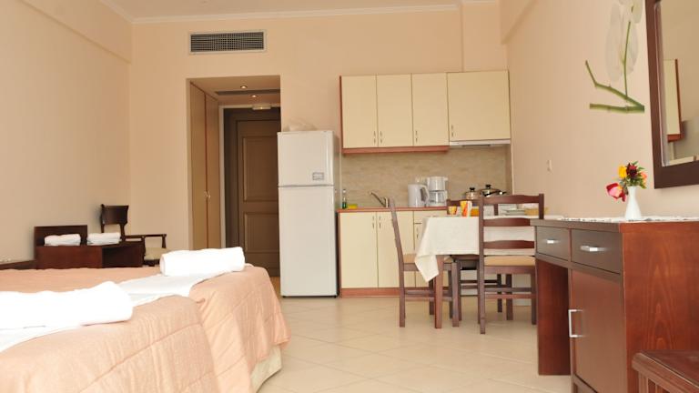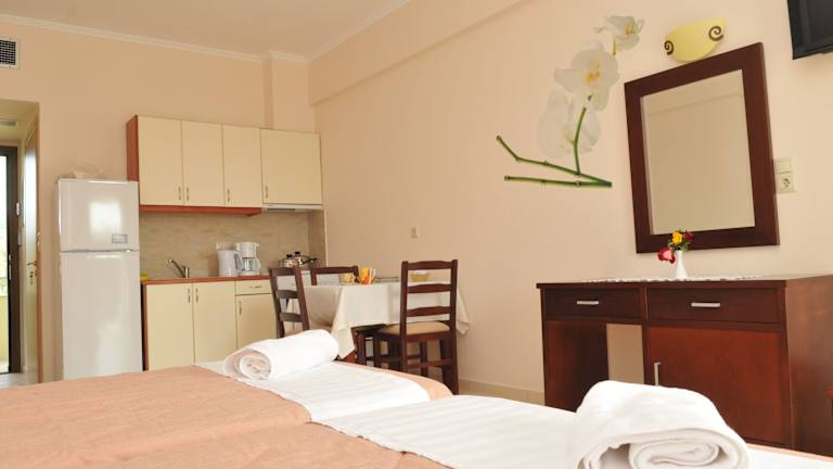 Die klimatisierten Wohneinheiten verfügen über Fliesenböden sowie ein eigenes Badezimmer. Jedes Zimmer ist mit einem Flachbild-TV, einem Schreibtisch, einer ausgestatteten Küche mit Kühlschrank, Ofen und Herdplatte sowie einer Kaffeemaschine und einem Wasserkocher ausgestattet. Es gibt auch einen Balkon mit Gartenblick.