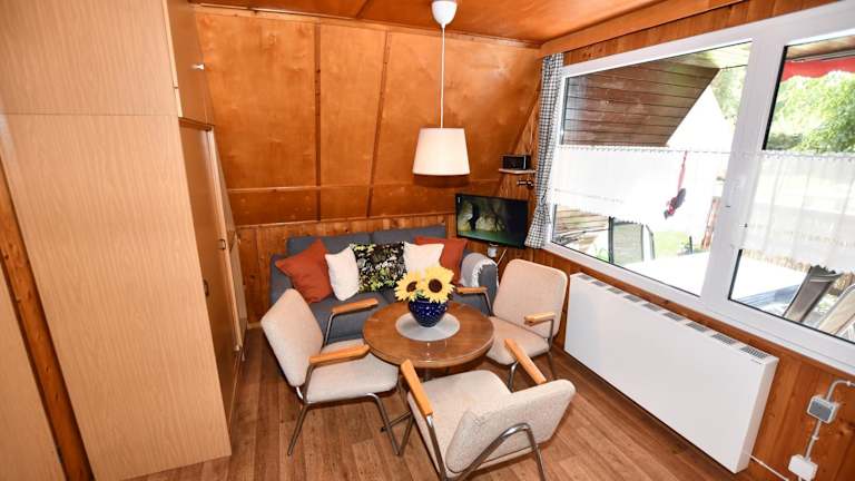Die Unterkunft Finnhütten Waldesruh befindet sich in einer ruhigen Feriensiedlung und bietet einen Blick auf den Garten. In der Umgebung gibt es Möglichkeiten zum Kanufahren sowie für Aktivitäten wie Tischtennis und Velofahren.