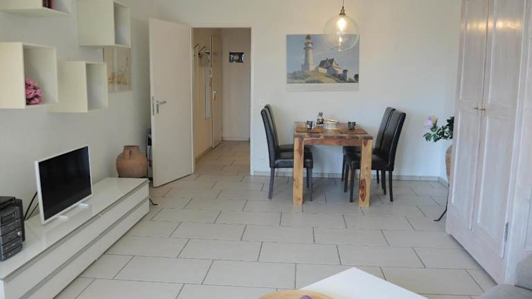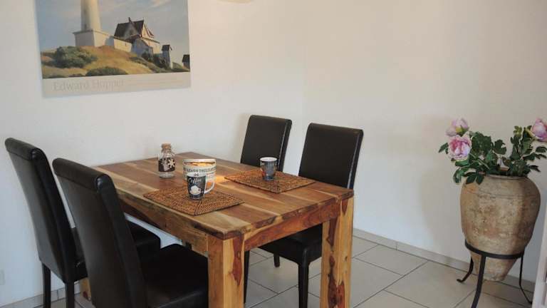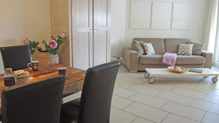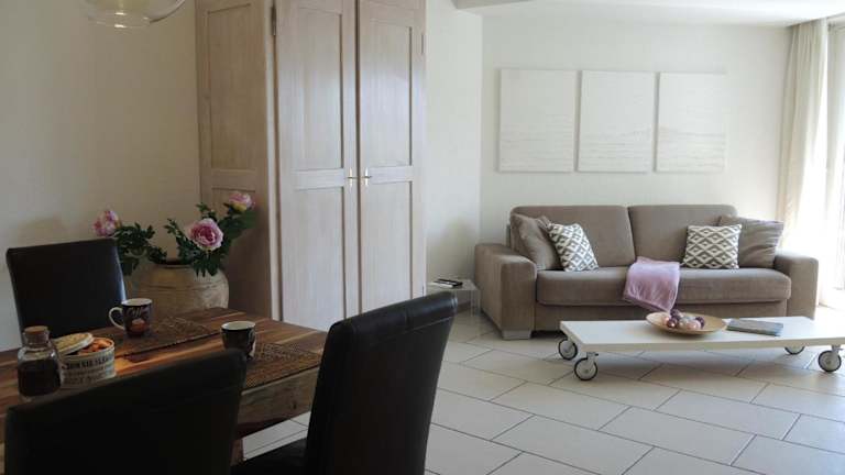 Die Ferienwohnung umfasst ein Schlafzimmer, ein Wohnzimmer und eine gut ausgestattete Küche, die mit einem Kühlschrank und einem Geschirrspüler ausgestattet ist. Handtücher und Bettwäsche werden zur Verfügung gestellt.