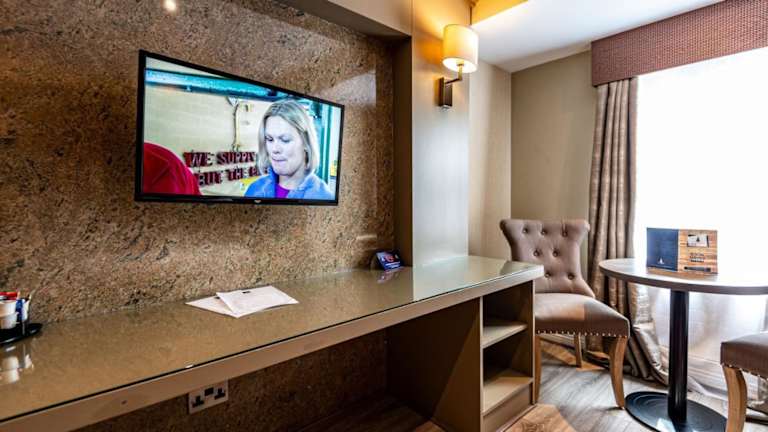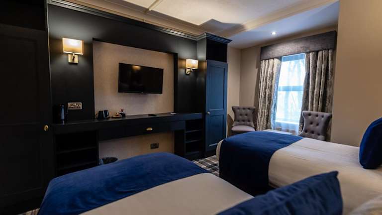 Das Frühstück umfasst verschiedene Optionen wie kontinentales, englisches/irisches oder vegetarisches Frühstück. Es gibt auch die Möglichkeit, Frühstück im Zimmer zu geniessen. Das Hotel bietet eine Bar und ein Café vor Ort, in dem Getränke und kleine Snacks serviert werden.