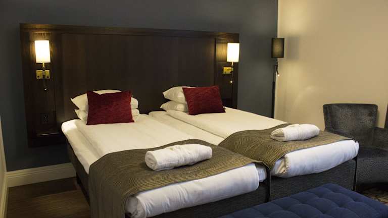 Die Zimmer sind mit Doppelbetten, Safe, Minibar, Schreibtisch und einem Tee-/Kaffeemaschine ausgestattet. Zur Unterhaltung stehen TV-Gerät mit Kabelempfang und Wifi zur Verfügung. Die Badezimmer verfügen über Dusche und Badewanne sowie Haartrockner. Des Weiteren stehen rollstuhlgerechte Zimmer mit barrierefreiem Bad zur Verfügung. Es sind auch Familien- und Nichtraucherzimmer verfügbar.