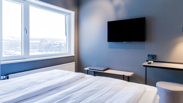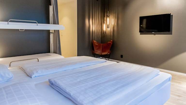 Die Zimmer sind im zeitlosen skandinavischen Stil gestaltet und bieten ein angenehmes Raumklima durch Klimaanlage und Heizung. Sie sind mit einem Doppelbett oder Kingsize-Bett ausgestattet, und auf Anfrage sind Zustellbetten erhältlich. Zu den Annehmlichkeiten gehören ein Schreibtisch, ein Telefon, Sat-TV, WLAN sowie ein Badezimmer mit Dusche und Badewanne, ausgestattet mit einem Haartrockner und Kosmetikartikeln. Rollstuhlgerechte Zimmer mit barrierefreien Badezimmern sind ebenfalls verfügbar. Familien- und Nichtraucherzimmer werden angeboten.