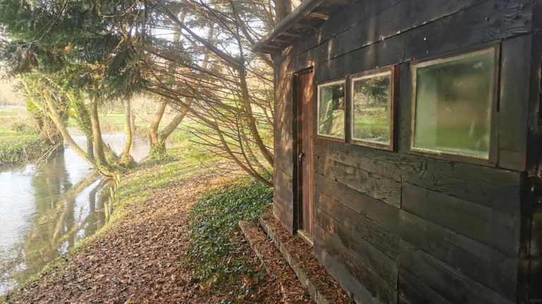Fisherman's Cabin on the banks of the River Meon bietet eine heimelige Atmosphäre mit einem Sitzbereich und einer voll ausgestatteten Küchenzeile. Die Unterkunft ist privat geführt und eignet sich ideal für ruhige Ferien am Wasser.