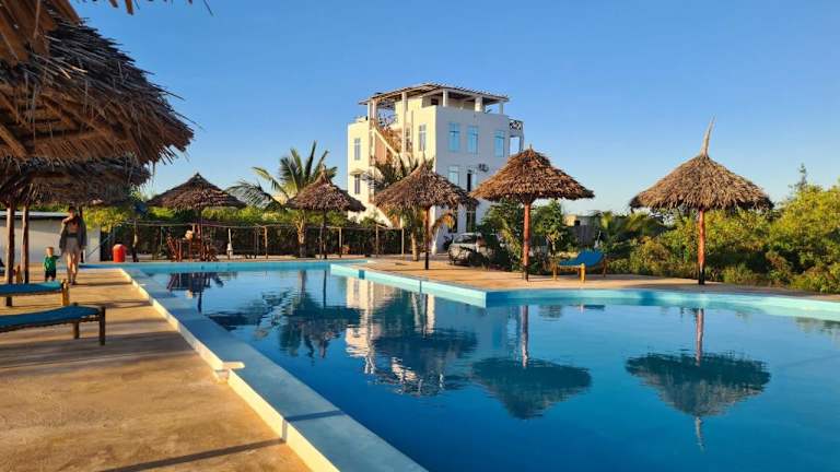 Das Five Seasons Zanzibar Ocean View Hotel befindet sich in Muyuni, nur 300 m vom Strand Muyuni Beach entfernt. Die Umgebung bietet vielfältige Möglichkeiten für Aktivitäten wie Wandern, Schnorcheln und Fahrradfahren. Die Lage ist außerdem in der Nähe von Kichwele Forest Reserve, das 33 km entfernt liegt. Der nächstgelegene Flughafen ist der Flughafen Sansibar, der 56 km von der Unterkunft entfernt ist.