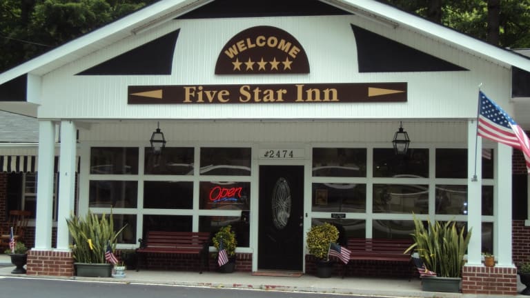 Verbringen Sie einen erstklassigen Aufenthalt im Five Star Inn in Maggie Valley. Dieses Motel bietet Ihnen eine malerische Lage direkt am Bach, kostenfreies WLAN und eine bequeme Anbindung zu den Great Smoky Mountains. Die Zimmer sind gut ausgestattet und verfügen über Annehmlichkeiten wie Mikrowelle, Kühlschrank und Flachbild-TV. Parkplätze stehen Ihnen kostenfrei zur Verfügung und das Motel bietet zusätzliche Annehmlichkeiten wie Angelmöglichkeiten und Eismaschinen. Erkunden Sie die nahegelegenen Attraktionen wie das Wheels Through Time Museum, das Skigebiet Cataloochee und die Ghost Town in the Sky.