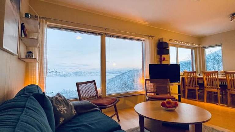 Die Unterkunft Fjäll-lägenhet med fantastisk utsikt befindet sich in Riksgränsen, weniger als 44 km von Narvik Museum entfernt und bietet eine eindrückliche Aussicht auf die Berge und den See.
