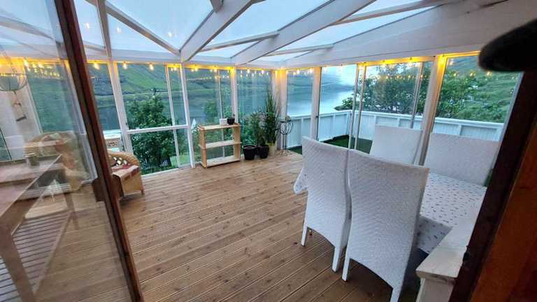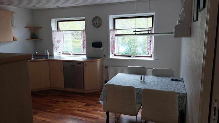 Das Fjord Guesthouse verfügt über eine Ferienwohnung mit 3 Schlafzimmern, einem Wohnzimmer, einem Flachbild-TV sowie einer gut ausgestatteten Küche mit Kühlschrank und Geschirrspüler. Zudem bietet die Unterkunft 2 Badezimmer mit Dusche. Handtücher und Bettwäsche werden zur Verfügung gestellt. Eine Terrasse mit Bergblick sorgt für eine heimelige Atmosphäre.
