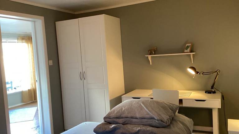 Die Ferienwohnung verfügt über ein Schlafzimmer sowie eine voll ausgestattete Küche mit Kühlschrank, Ofen und Wasserkocher. Handtücher und Bettwäsche werden zur Verfügung gestellt.