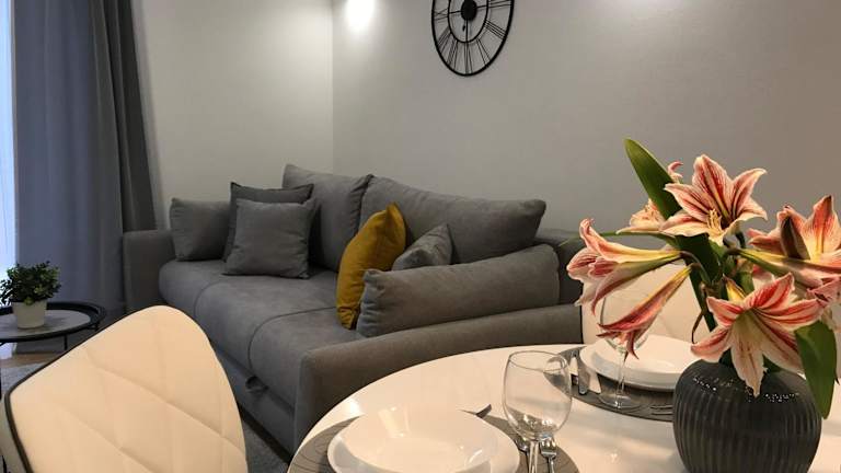 Die Unterkunft FK Apartments bietet einen Blick auf die Stadt und verfügt über Übernachtungsmöglichkeiten mit einem Balkon und einem Wasserkocher. Die Ferienwohnung ist klimatisiert und beinhaltet ein Schlafzimmer, ein Wohnzimmer sowie eine voll ausgestattete Küche. Zu den Annehmlichkeiten zählen ein Garten, Grillmöglichkeiten und kostenloses Wifi. Es sind keine Junggesellen-/Junggesellinnenabschiede oder ähnliche Feiern in der Unterkunft erlaubt.