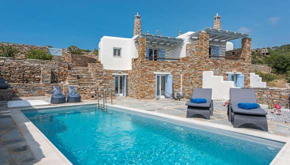 Das Flaias Gi Villa Retreat befindet sich in Agia Mavra auf der Insel Kea, umgeben von einer eindrucksvollen Natur und mit Aussicht auf das Meer.