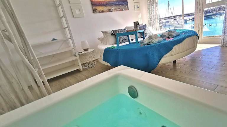Flamingo SPA Loft by Picasa Sicilia - SEASIDE - SEA & ORTIGIA VIEW bietet Übernachtungsmöglichkeiten in einer gemütlichen Ferienwohnung. Diese Unterkunft verfügt über einen Whirlpool und bietet Blick auf die Stadt sowie das Meer. Kostenfreies Wifi ist ebenfalls vorhanden.