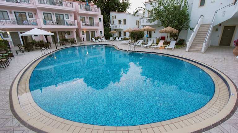 Die Flamingos Hotel Apartments bieten Ihnen eine Vielzahl von Freizeitaktivitäten. Entspannen Sie am ganzjährig geöffneten Außenpool und genießen Sie die Sonne im Garten. Für Kinder gibt es einen Spielplatz, auf dem sie sich austoben können. WLAN nutzen Sie kostenlos, um mit Ihren Lieben in Kontakt zu bleiben, und die Unterkunft bietet auch eine Autovermietung, um die Umgebung zu erkunden. Beliebte Strände wie Glaros, Iguana und Yannis sind in der Nähe und bieten die Möglichkeit zum Schwimmen und Sonnenbaden. Der internationale Flughafen Chania ist nur eine kurze Fahrt entfernt und die Unterkunft bietet auch einen kostenpflichtigen Flughafentransfer für Ihre Bequemlichkeit.