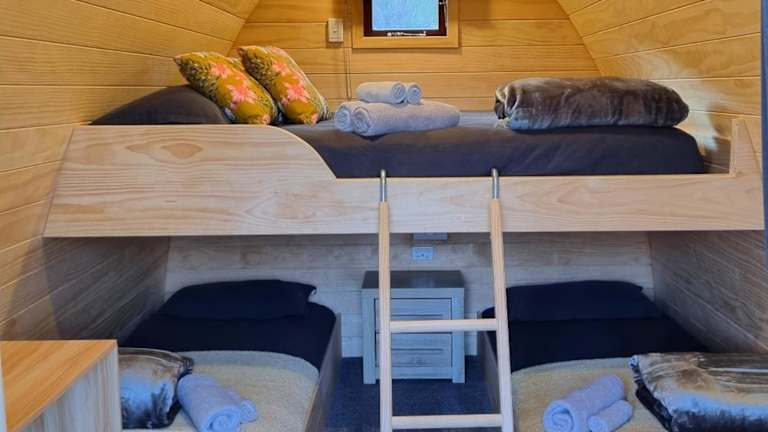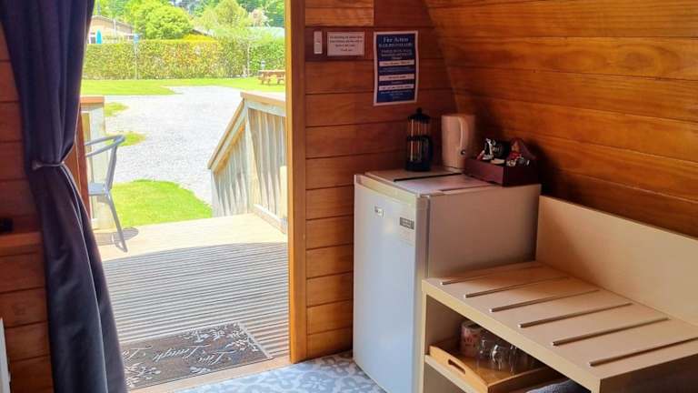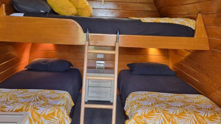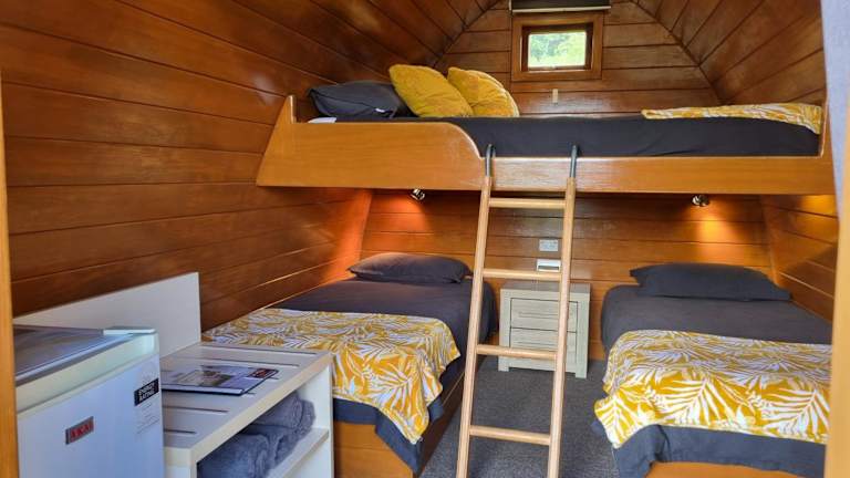 Die Unterkünfte sind mit einem Flachbild-TV, Kühlschrank sowie Tee- und Kaffeezubehör ausgestattet. Handtücher und Bettwäsche werden gestellt. Moderne Sanitäranlagen befinden sich in der Nähe der Kabinen.