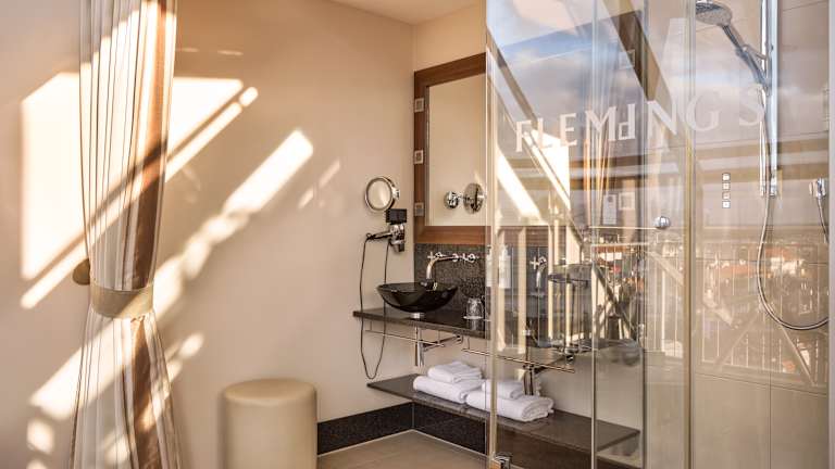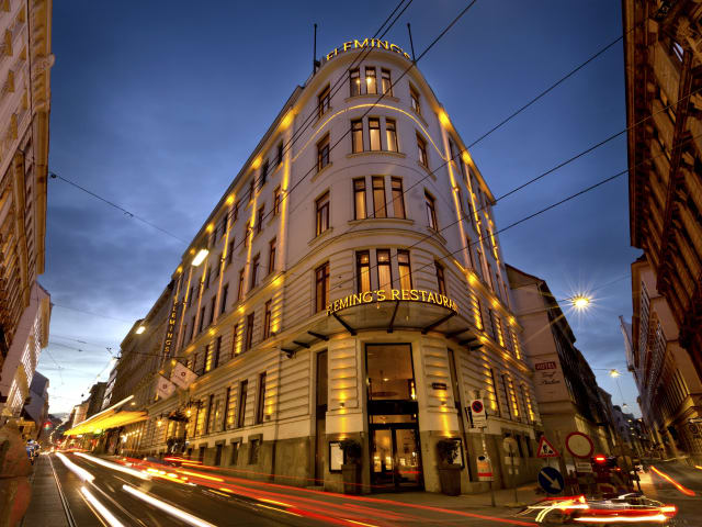Das Fleming's Selection Hotel Wien-City befindet sich im schönen Bezirk “Josefstadt“. Das Hotel liegt direkt hinter dem historischen Rathaus und nur wenige Gehminuten vom Parlament und der Hofburg entfernt. Alle Wahrzeichen und Highlights der Kaiserstadt können Sie bequem zu Fuß erreichen. Das Haus bietet persönlichen Service, Wohnkomfort Deluxe und ein unverwechselbares Designkonzept, welches sich als schlicht, elegant und hochwertig beschreiben lässt. Dunkle Hölzer mit Stoffen und Materialien in warmen Erdtönen wie Bordeaux und Bernstein schaffen eine behagliche Atmosphäre. Das Designhighlight ist die Glasdusche mit Granit und Edelstahl in der Raummitte. Auch die technische Ausstattung ist vom Feinsten: Alle Zimmer sind klimatisiert und verfügen über einen Flachbildfernseher, sowie freien WLAN Zugang. Darüber hinaus erwarten Sie Serviceleistungen wie Schuhputz-, Limousinen-, Etagen- und Sekretariatsservice. Entspannen Sie nach einem anstrengenden Tag im hauseigenen Wellness- und Fitnessbereich mit Bio Sauna, finnischer Sauna und Dampfbad. Der Fitnessbereich ist mit modernen Fitnessgeräten ausgestattet.
