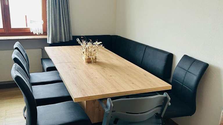 Die Unterkunft bietet zwei Schlafzimmer sowie ein Wohnbereich. Zudem ist eine gut ausgestattete Küche vorhanden, die den Gästen die Zubereitung eigener Mahlzeiten ermöglicht. Die Terrasse bietet zusätzlich die Möglichkeit, die Umgebung im Freien zu geniessen.