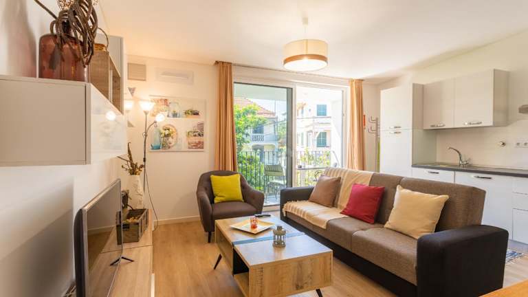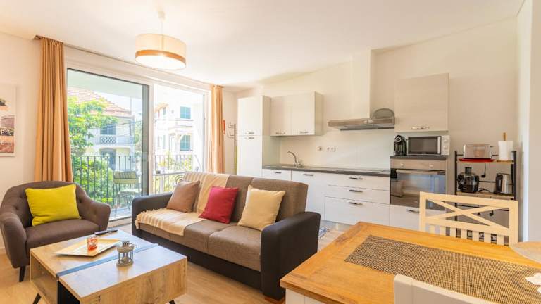 Die Zimmer sind ausgestattet mit einem Sitzbereich, einem TV und einer voll ausgestatteten Küchenzeile, die einen Kühlschrank, einen Ofen, eine Mikrowelle, eine Herdplatte, einen Toaster, eine Kaffeemaschine und einen Wasserkocher umfasst. Ein eigenes Badezimmer mit Dusche und Haartrockner ist ebenfalls vorhanden.