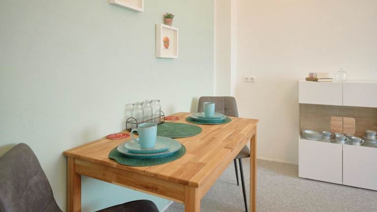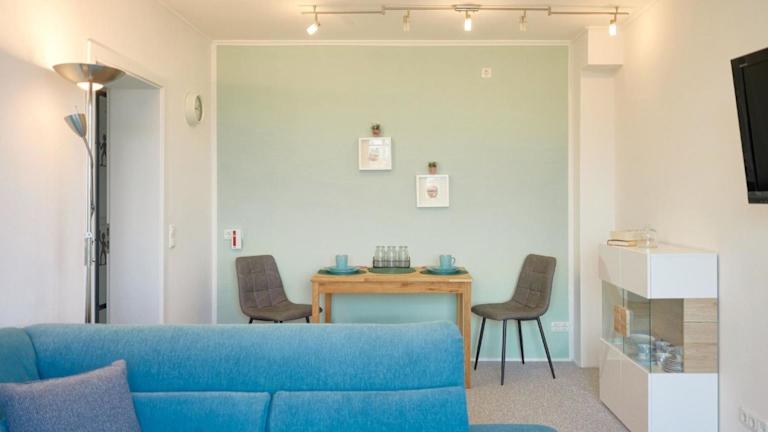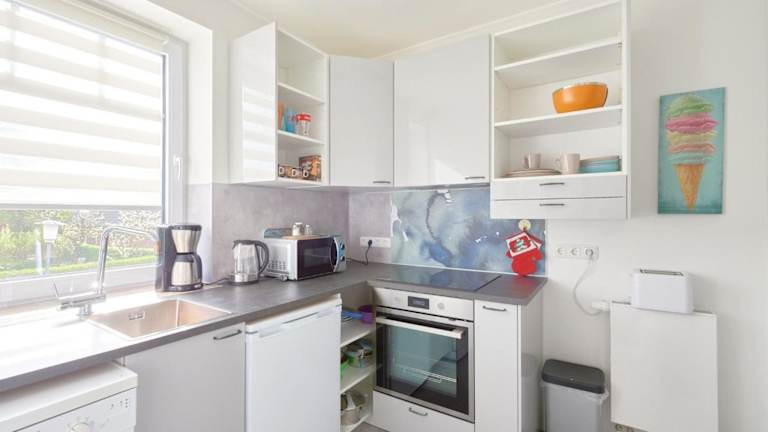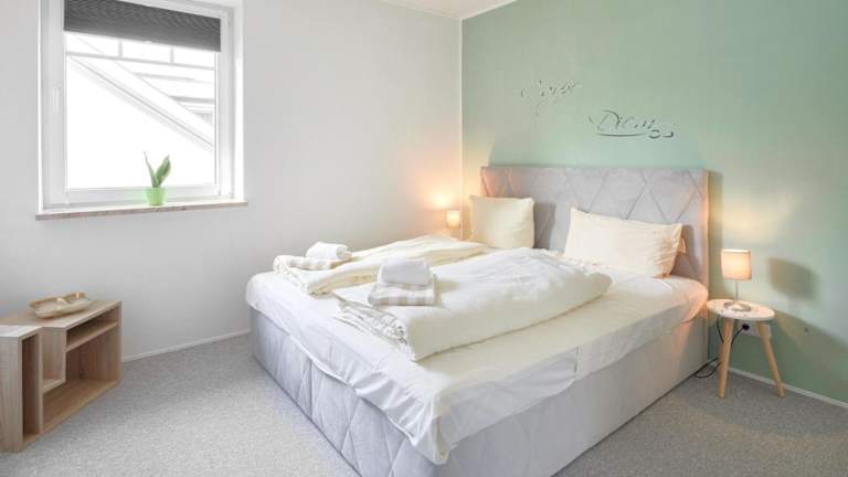 Die Ferienwohnung umfasst ein Schlafzimmer, ein Wohnzimmer, ein Badezimmer mit Dusche, sowie eine gut ausgestattete Küche mit Kühlschrank und Geschirrspüler. Gäste profitieren von kostenlosem WLAN und einem Privatparkplatz.