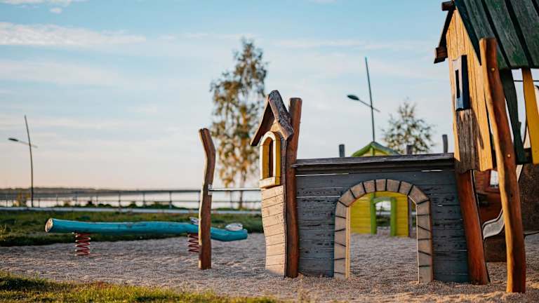 Das Ferienhaus besteht aus 2 Schlafzimmern, einem Wohnzimmer und einer voll ausgestatteten Küche mit Kühlschrank und Kaffeemaschine. Zur weiteren Ausstattung gehören ein Badezimmer mit Dusche, Handtücher und Bettwäsche sowie eine Terrasse und ein Kinderspielplatz.