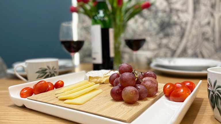 Die Ferienwohnung umfasst ein Schlafzimmer, ein Wohnzimmer, einen Essbereich sowie eine gut ausgestattete Küche mit Geschirrspüler. Des Weiteren sind ein Flachbild-TV sowie Handtücher und Bettwäsche in der Unterkunft verfügbar. Die Wohnung bietet Platz für Familien und ist Nichtraucherzimmer.