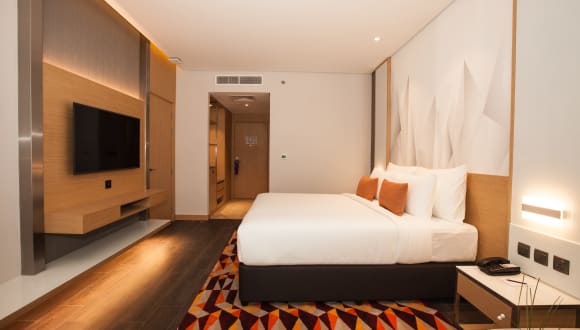 Located within 1km to Dubai International Airport Flora Inn Airport Hotel features modern luxurious accommodation restaurant and café offering Indian, Arabic and International cuisine. It offers a temperature controlled outdoor pool, a kid’s pool, fully equipped health club and extensive spa treatments. Guests receive complimentary Hi Speed Wi-Fi in rooms and all public areas of the property. The renowned Dubai Creek is accessible through a 10 minute drive, while the famous Dubai Gold Souk and Spice Souk are 20 minutes away. Major shopping malls including Deira City Centre, Festival City Mall and Mirdif City Centre are within a 10 minute drive from the hotel, GGiCO Dubai Metro Station is a 10 minute walk while Dubai international Airport is a 2 minute drive. The rooms at Flora Inn Airport are decorated with natural, soft colors. They are equipped with flat-screen TVs with satellite channels. Other amenities include work desk, tea/coffee making facilities, Iron and a board, bathrobe with slippers, private bathroom with free toiletries. The hotel has its own temperature-controlled swimming pool located on roof top where guests can enjoy the sun on the deck surrounding the outdoor pool. The on-site Health Club & Wellness Centre offers massage treatments and steam, sauna. It also has state of the art fitness center with the latest cardiovascular equipment. For dinner, guests can choose from a variety of restaurants with cuisines such as Indian, Arabic and International. The coffee shop lounge offers various snacks and beverages to choose from. Garhoud is a great choice for travelers interested in sightseeing, shopping and luxury brand shopping. Rooms: 228