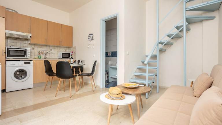 Flora Maisonettes 1 ist eine Ferienwohnung, die mit Klimaanlage ausgestattet ist. Die Unterkunft besitzt 2 Schlafzimmer, ein Wohnzimmer und eine voll ausgestattete Küche mit Kühlschrank. Das Badezimmer ist mit einer Dusche und einem Haartrockner versehen. Handtücher und Bettwäsche werden bereitgestellt. WLAN ist kostenlos verfügbar.