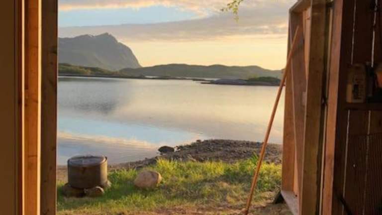 Flott hytte og naust med beliggenhet ved vannet! ist eine heimelige Unterkunft am Wasser mit eigenem Strandbereich und einem Restaurant.