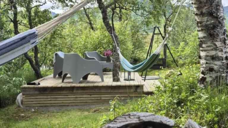 Die Gäste können nach einem aktiven Tag beim Wandern, Skifahren oder Angeln im Garten oder in der Gemeinschaftslounge entspannen.