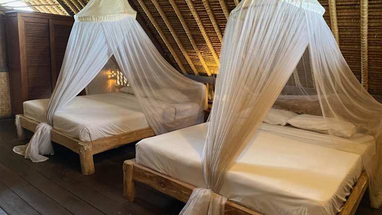 Die Zimmer im Flower Bud Bungalow Balangan bieten eine ethno-schicke Atmosphäre und sind mit dekorativen Moskitonetzen sowie Strohdächern ausgestattet. Jedes Zimmer verfügt über einen Ventilator, ein eigenes Bad mit einer Aussendusche aus lokalem Stein und einen Safe.