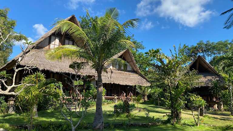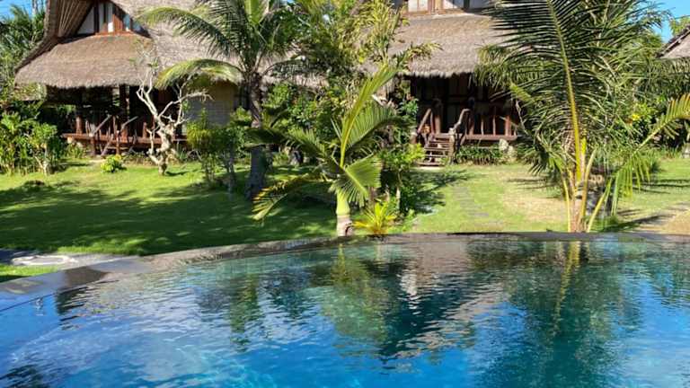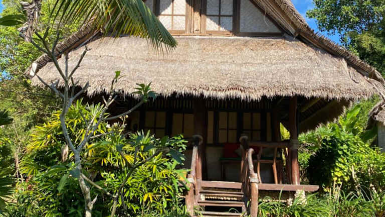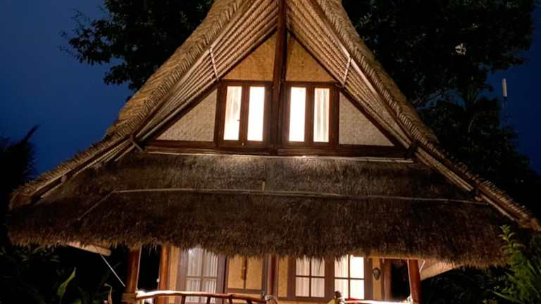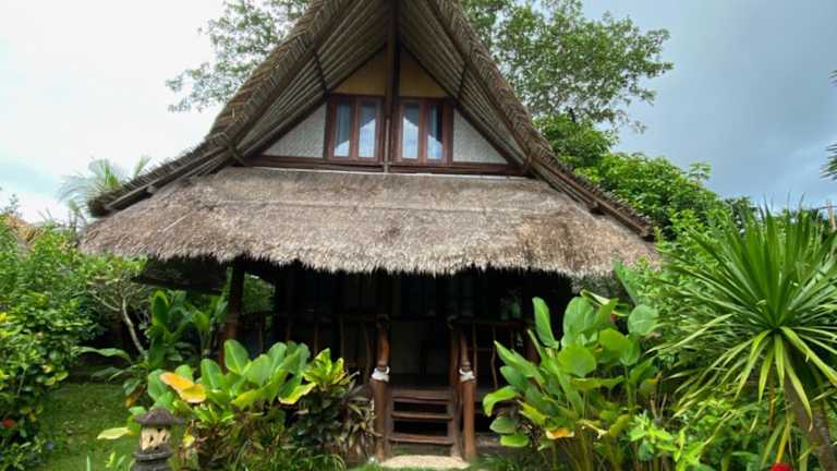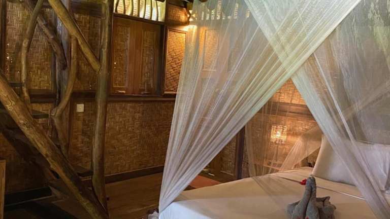 Das Flower Bud Bungalow ist aus unverarbeiteten natürlichen Materialien wie Bambus und Weide erbaut und fügt sich harmonisch in die Landschaft ein. Zur Entspannung steht ein äusserer Pool von 12 m Länge zur Verfügung, sowie verschiedene Spa-Anwendungen.