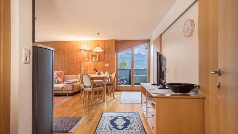 Die Försterhaus Wohnung Dachgeschoss befindet sich in Egg, in einer schönen Umgebung mit zahlreichen Möglichkeiten zum Wandern und Velofahren. Die Lage bietet zudem einen herrlichen Bergblick.
