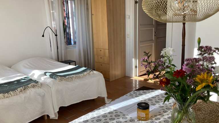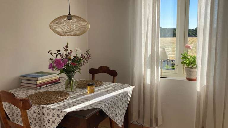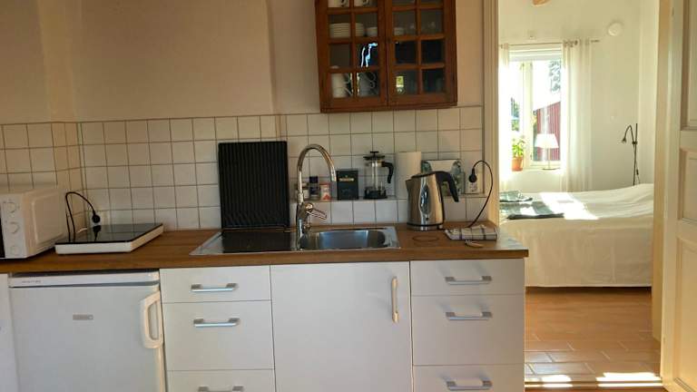 Die Förtjusande Gästsvit mit offener Feuerstelle bietet einladende Übernachtungsmöglichkeiten mit Gartenblick. Die Unterkunft umfasst eine Terrasse und eine Veranda/Patiow, ideal für entspannende Momente in der Natur. Diese Ferienwohnung wird von einem privaten Gastgeber geführt und es sind keine Junggesellen-/Junggesellinnenabschiede oder ähnliche Feiern erlaubt. Der Check-in ist ab 15:00 bis 21:00 Uhr möglich, während der Check-out zwischen 07:00 und 11:00 Uhr erfolgt.