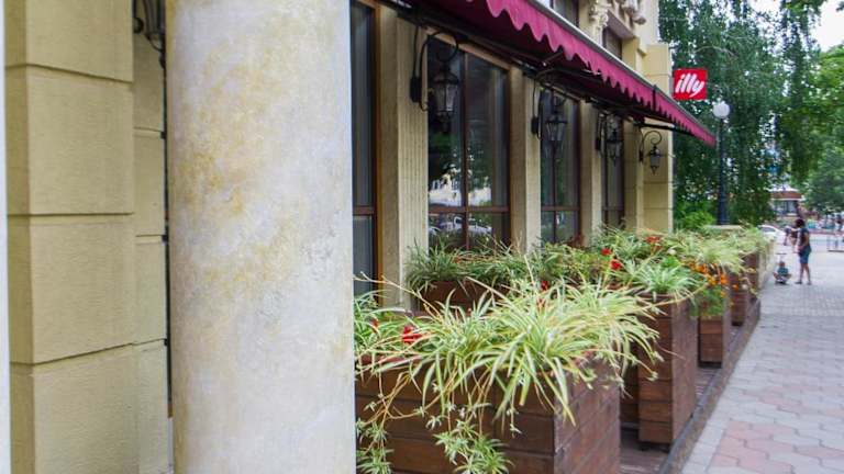Im hoteleigenen Restaurant können die Gäste europäische und ukrainische Küche geniessen. Ein Café vor Ort sorgt für weitergehende Verpflegungsmöglichkeiten. Den Gästen werden verschiedene Snacks und Getränke zur Verfügung gestellt.