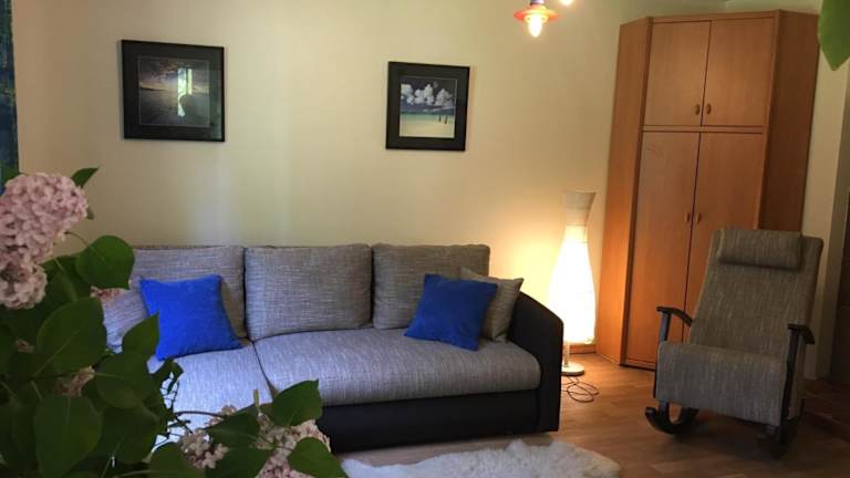 Die voll ausgestattete Küche umfasst einen Kühlschrank und eine Kaffeemaschine. Zudem besteht die Möglichkeit, Essenslieferungen in die Unterkunft zu erhalten. Von der Unterkunft aus können Gäste die Möglichkeit nutzen, die beruhigende Atmosphäre im Garten zu geniessen.