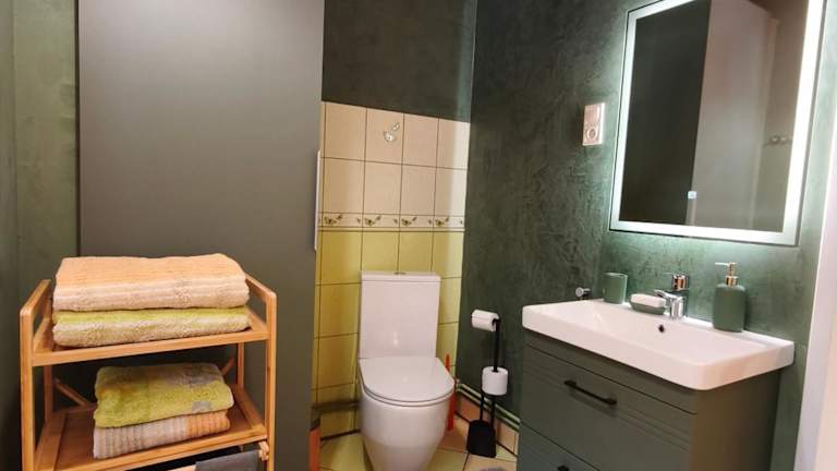 Das Ferienhaus besteht aus einem Schlafzimmer, einem Wohnzimmer sowie einem Badezimmer mit einer Dusche und einem Whirlpool. Handtücher und Bettwäsche werden zur Verfügung gestellt. Die Zimmer sind schallisoliert und die Unterkunft bietet Nichtraucherzimmer sowie Familienzimmer.