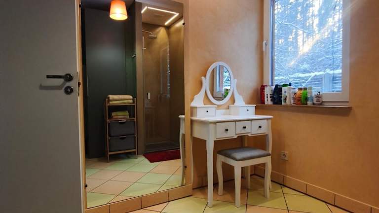 Forest house with outdoor hot tub verfügt über eine Terrasse mit Gartenblick. Die Unterkunft bietet einen Garten und Grillmöglichkeiten. Gästen steht kostenloses WLAN und ein kostenloser Privatparkplatz zur Verfügung. Das Ferienhaus ist mit Klimaanlage ausgestattet und verfügt über eine Heizung mit einem Kamin sowie elektrischen Fussbodenheizungen für den Winter. Die Unterkunft erlaubt keine Junggesellen- oder Junggesellinnenabschiede.
