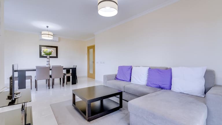 Die Ferienwohnung Forte Novo - Modern apartment - Quarteira bietet Übernachtungsmöglichkeiten mit einem Balkon und einem Poolblick. Die klimatisierten Zimmer sind modern eingerichtet und verfügen über eine Terrasse sowie Meerblick. Zudem stehen den Gästen ein Aussenpool und ein Kasino zur Verfügung.