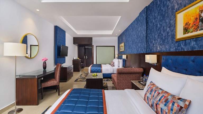 Zu den Verpflegungsmöglichkeiten gehört ein exklusives indisches Restaurant sowie Zimmerservice, der rund um die Uhr verfügbar ist. Ein Buffetangebot für Kinder sowie Mahlzeiten im Zimmer sind ebenfalls erhältlich.