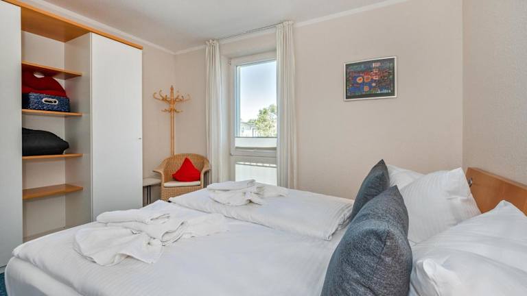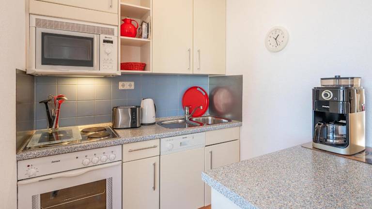 Die Ferienwohnung hat ein Schlafzimmer und ist mit einem Flachbild-TV sowie einer voll ausgestatteten Küche eingerichtet. Die Küche verfügt über einen Kühlschrank, Geschirrspüler, Waschmaschine, Ofen und Mikrowelle. Handtücher und Bettwäsche werden bereitgestellt.