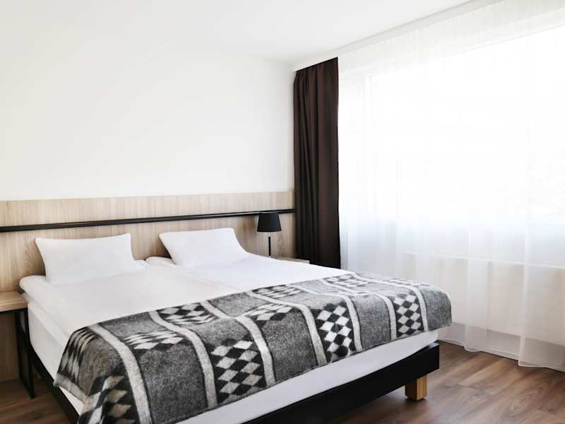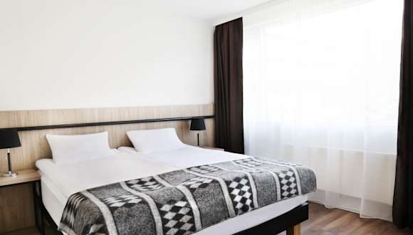 Die Zimmer sind ausgestattet mit einem Doppelbett und einem Sofabett, einem Badezimmer mit Dusche sowie Annehmlichkeiten wie einem Flachbildschirmfernseher, einem Schreibtisch und einer Tee-/Kaffeemaschine. Die Zimmer verfügen zudem über Heizung, Telefon und einen Safe. Viele der Zimmer bieten einen Blick auf die Kirche Hallgrimskyrkja. Für Eltern mit Kindern stehen spezielle Familienzimmer zur Verfügung.