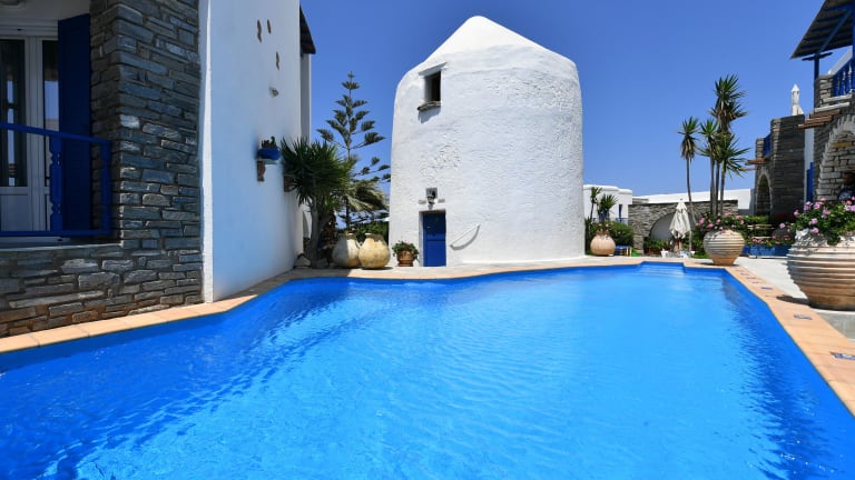 Das Fotilia Hotel befindet sich in Naousa auf Paros, nur 3 Minuten vom Zentrum entfernt und in einer Entfernung von 500 Metern zum Agioi Anargyroi Strand. Paroikia Stadt und der Hafen liegen 10 km entfernt, während Pounda Hafen 12 km und der beliebte Kolympithres Strand 4 km entfernt sind.