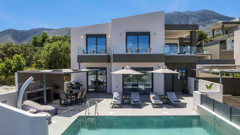 Die Four Horizons Luxury Villas bieten eine heimelige Atmosphäre mit einer Terrasse und Meerblick. Die Unterkunft zeichnet sich durch moderne Annehmlichkeiten aus, die den Gästen einen entspannten Aufenthalt ermöglichen.