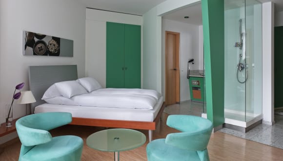 Das Hotel INNSIDE Munich Neue Messe verfügt über 134 helle, geräumige und elegante Zimmer mit moderner Ausstattung und hochwertigen Annehmlichkeiten. 98 INNSIDE-Zimmer (Queen Size-Bett), Einzel- oder Doppelbelegung (24 m²) 24 INNSIDE Premium-Zimmer (Queen Size-Bett), Einzel- oder Doppelbelegung (32 m²) 4 INNSIDE Premium-Zimmer (2 Einzelbetten), Einzel- oder Doppelbelegung (32 m²) 8 Lifestyle Suiten (King Size-Bett/Queen Size-Bett, 40 - 45 m²) Miteinander verbundene Zimmer auf Anfrage Fernseher mit Satellitenempfang und Radio Highspeed-Internetzugang (wird extra berechnet) WLAN-Zugang zum Internet (wird extra berechnet) Zimmerservice Verglaste Duschkabine Klimaanlage