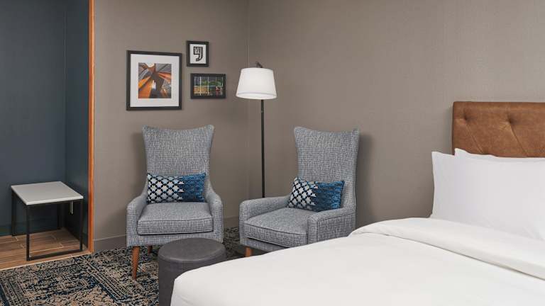Die Zimmer sind mit Klimaanlage und Heizung ausgestattet und verfügen über Teppichböden. Zur Einrichtung gehören ein Doppelbett, Queensize-Bett, Kingsize-Bett oder ein Sofabett. Ein Safe, eine Minibar, ein Kühlschrank, eine Mikrowelle, eine Tee-/Kaffeemaschine sowie ein Bügelset sind ebenfalls vorhanden. Die Unterbringung bietet zudem ein Badezimmer mit Dusche, Föhn und Kosmetikartikeln. Zusätzlich sind rollstuhlgerechte Zimmer mit barrierefreiem Badezimmer verfügbar.