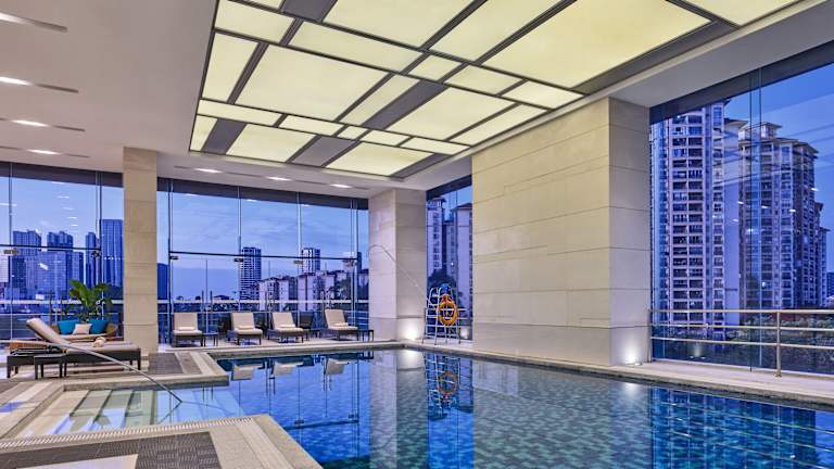 Das Hotel bietet eine moderne und elegante Atmosphäre und umfasst insgesamt 300 Zimmer, die über 24 Etagen verteilt sind. Zudem gibt es behindertengerechte Einrichtungen und diverse Annehmlichkeiten, darunter einen Garten, einen Spielplatz und einen TV-Raum. Es stehen auch verschiedene Geschäfte zur Verfügung, die das Stöbern und Einkaufen einladen. Zu den Dienstleistungen gehören rund um die Uhr ein Sicherheitsdienst, Babysitterservice sowie eine Autovermietung.