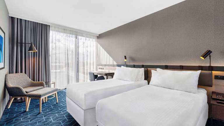 Die 273 Zimmer sind mit Klimaanlage, Heizung, Teppichböden und Doppel-, Queensize- oder Kingsize-Betten ausgestattet. Zu den weiteren Annehmlichkeiten gehörten ein Safe, eine Minibar, ein Schreibtisch und eine Tee-/Kaffeemaschine. Ein Badezimmer mit Dusche und Haartrockner ist ebenfalls vorhanden. Einige Zimmer sind rollstuhlgerecht eingerichtet.
