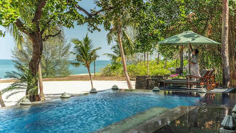 Das Four Seasons Resort Langkawi ist ein Luxus-Resort im traditionellen Kampong Design. Es hat 91 geräumige Pavillons und Villen, inspiriert von malaiischer und maurischer Architektur, die eine harmonische Verbindung zur umliegenden Natur schaffen. Die Unterkunft bietet eine 24-Stunden-Rezeption, einen Garten, eine Sonnenterrasse und mehrere Pools. Zur weiteren Ausstattung gehören ein Souvenirshop, mehrere Restaurants, eine Bar, ein Spa sowie umfassende Dienstleistungen wie Concierge-Service und Zimmerservice.