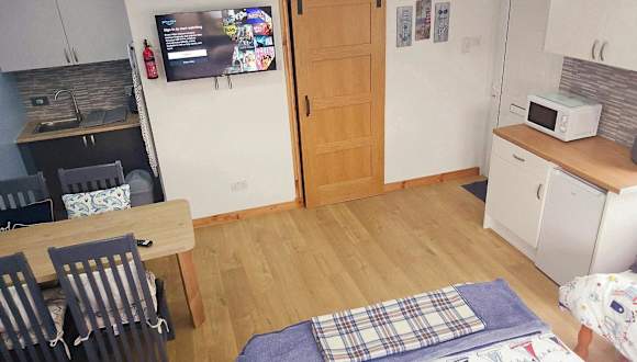 Die Ferienwohnung umfasst ein Schlafzimmer, ein Wohnzimmer sowie eine gut ausgestattete Küchenzeile mit Kühlschrank und Mikrowelle. Zudem verfügt sie über ein Badezimmer mit Dusche und bietet eine Veranda mit Gartenblick. Handtücher und Bettwäsche werden zur Verfügung gestellt.