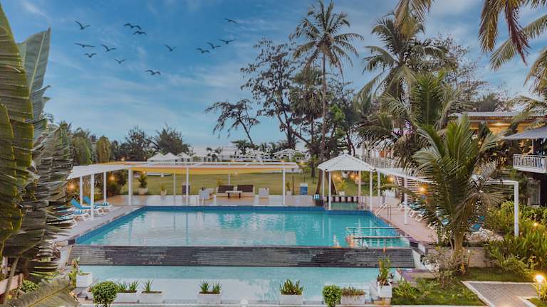 Das Foxoso La Beach Resort & Spa befindet sich in Velha Goa, nur 300 Meter vom Morjhim Beach entfernt. Die Umgebung bietet schöne Strände und Sehenswürdigkeiten wie Chapora Fort (14 km), Bahnhof Thivim (22 km) und Terekhol Fort (22 km). Der nächste Flughafen, der Internationale Flughafen Manohar, liegt 29 km entfernt.