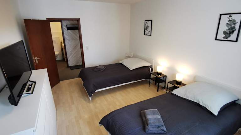 Die Unterkunft FR14 - Schöne 2-Zimmer-Wohnung mit Balkon in Heusenstamm ist gelegen in Heusenstamm, 15 km von Deutschen Filmmuseum, Eiserner Steg und Kaiserdom St. Bartholomäus entfernt. Der nächstgelegene Flughafen ist der Flughafen Frankfurt, 20 km von der Unterkunft entfernt.